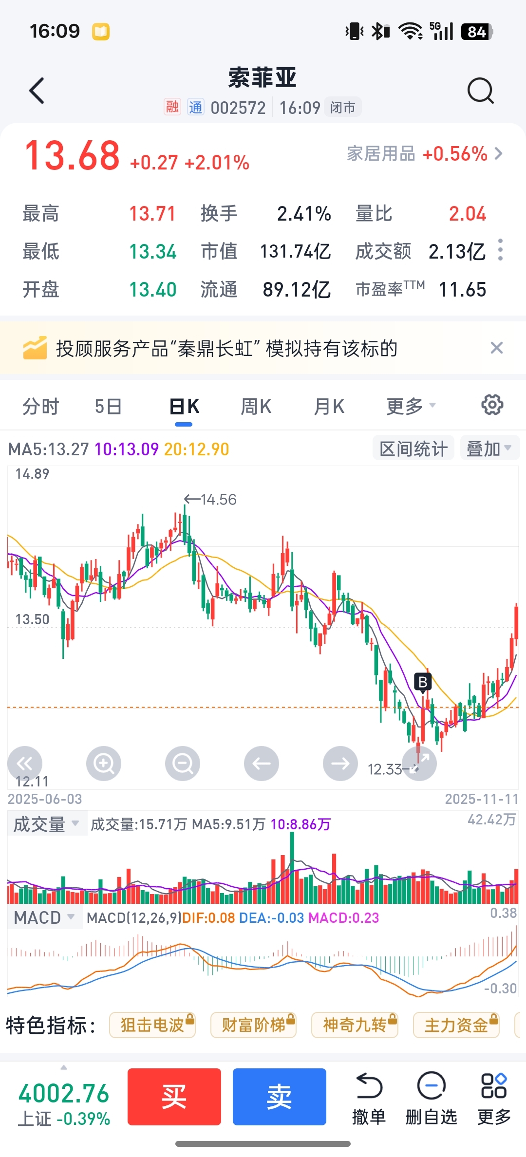 $索菲亚(SZ002572)$ 其实也就7个点不到,k线看着像很猛。。。