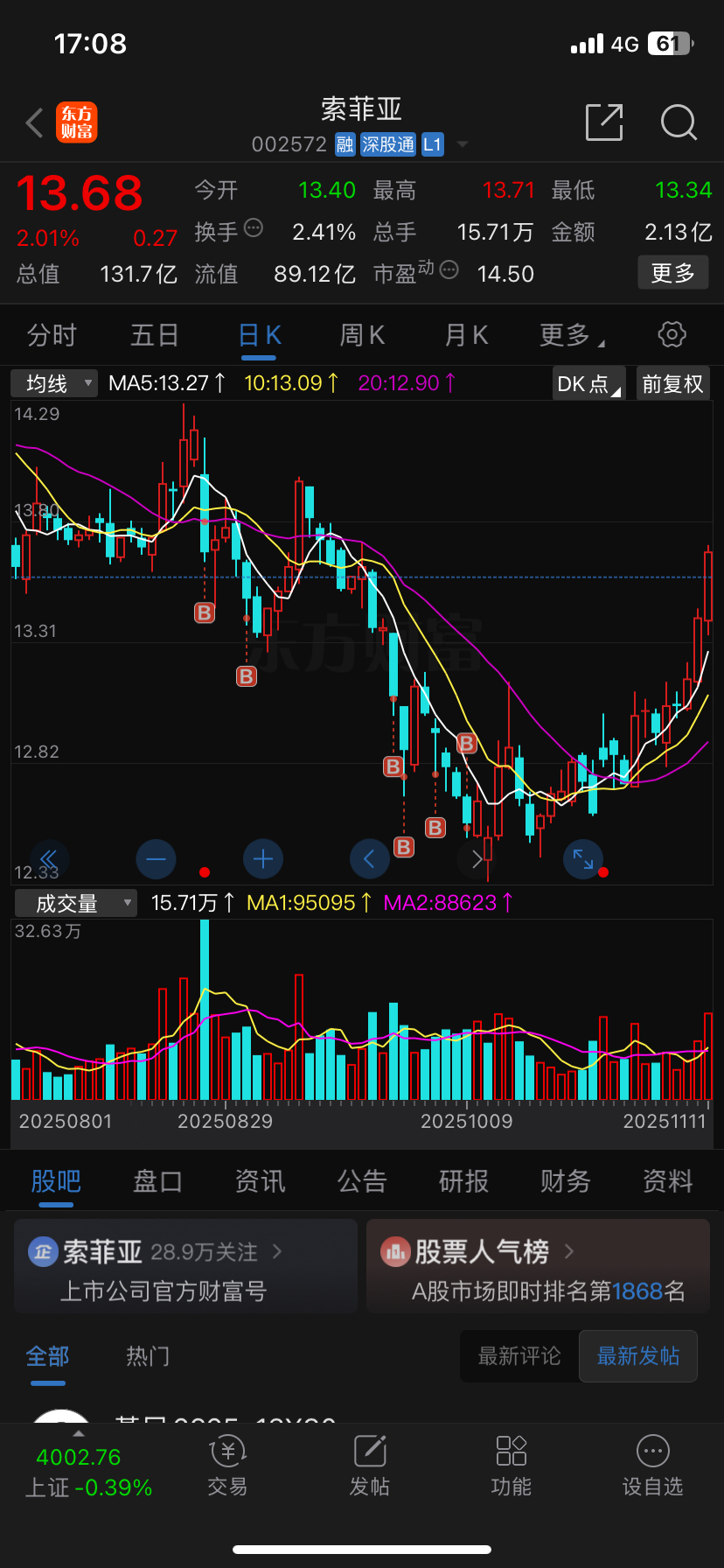 温馨提示: 1.根据《证券法》规定,禁止编造、传播虚假信息或者误导性信息,扰乱证券市场;2.用户在本社区发表的所有资料、言论等仅代表个人观点,与本网站立场无关,不对您构成任何投资建议。用户应基于自己的独立判断,自行决定证券投资并承担相应风险。《东方财富社区管理规定》
