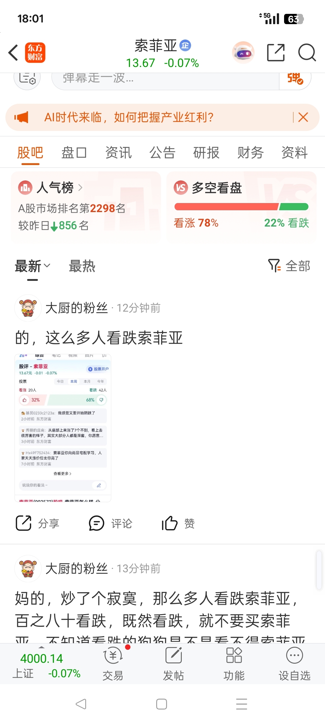 温馨提示: 1.根据《证券法》规定,禁止编造、传播虚假信息或者误导性信息,扰乱证券市场;2.用户在本社区发表的所有资料、言论等仅代表个人观点,与本网站立场无关,不对您构成任何投资建议。用户应基于自己的独立判断,自行决定证券投资并承担相应风险。《东方财富社区管理规定》
