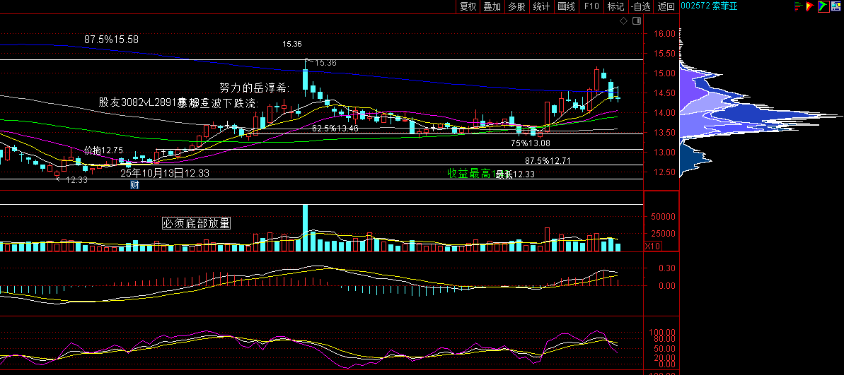 索菲亚-底部12.33(25年10月13日)起涨,一般会有底部震荡吸筹过程,建议老铁:逢高减仓