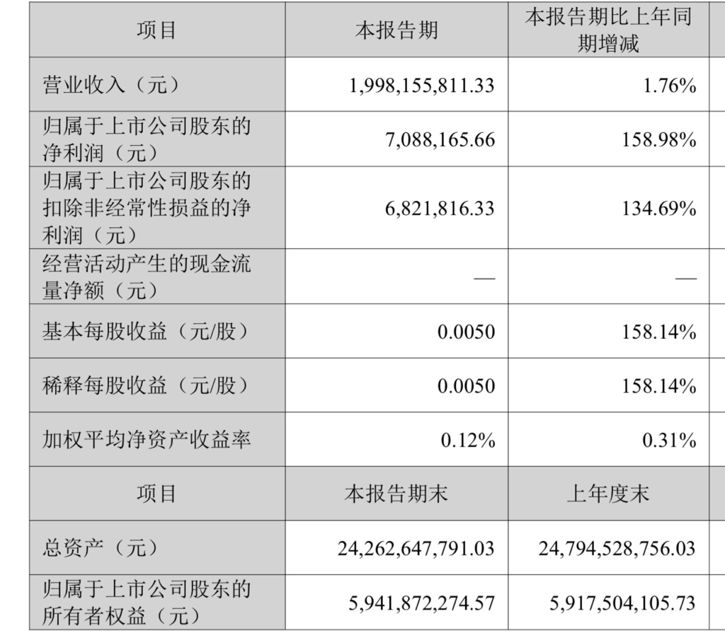 三季报业绩大增,归属于上市公司股东的净利润大增158.98%!归属于上市公司股东