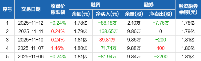 清新环境:融资余额1.78亿元,创近一年新低(11-12)