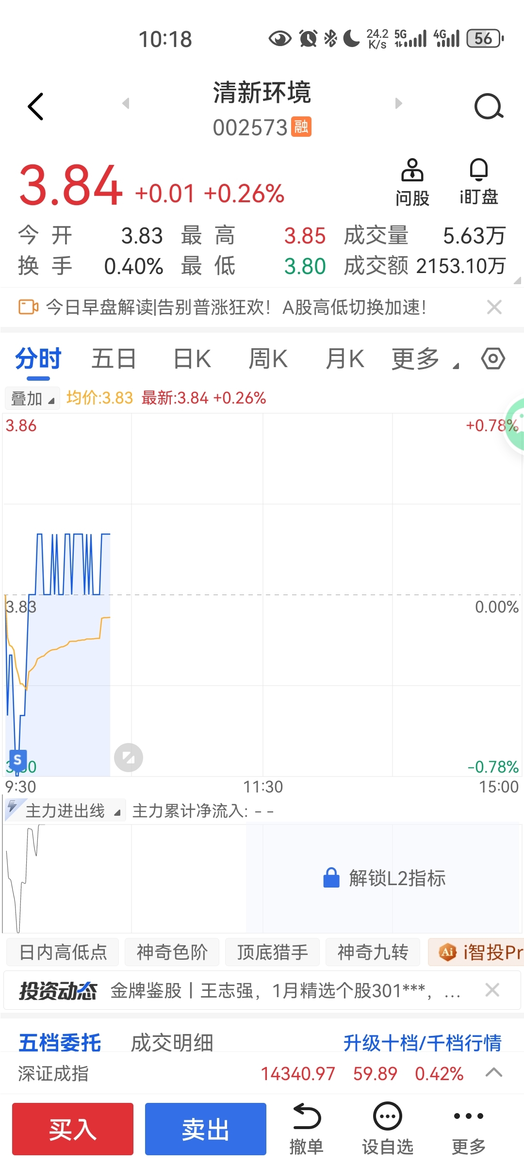 $清新环境(SZ002573)$ 我清了!你涨吧!