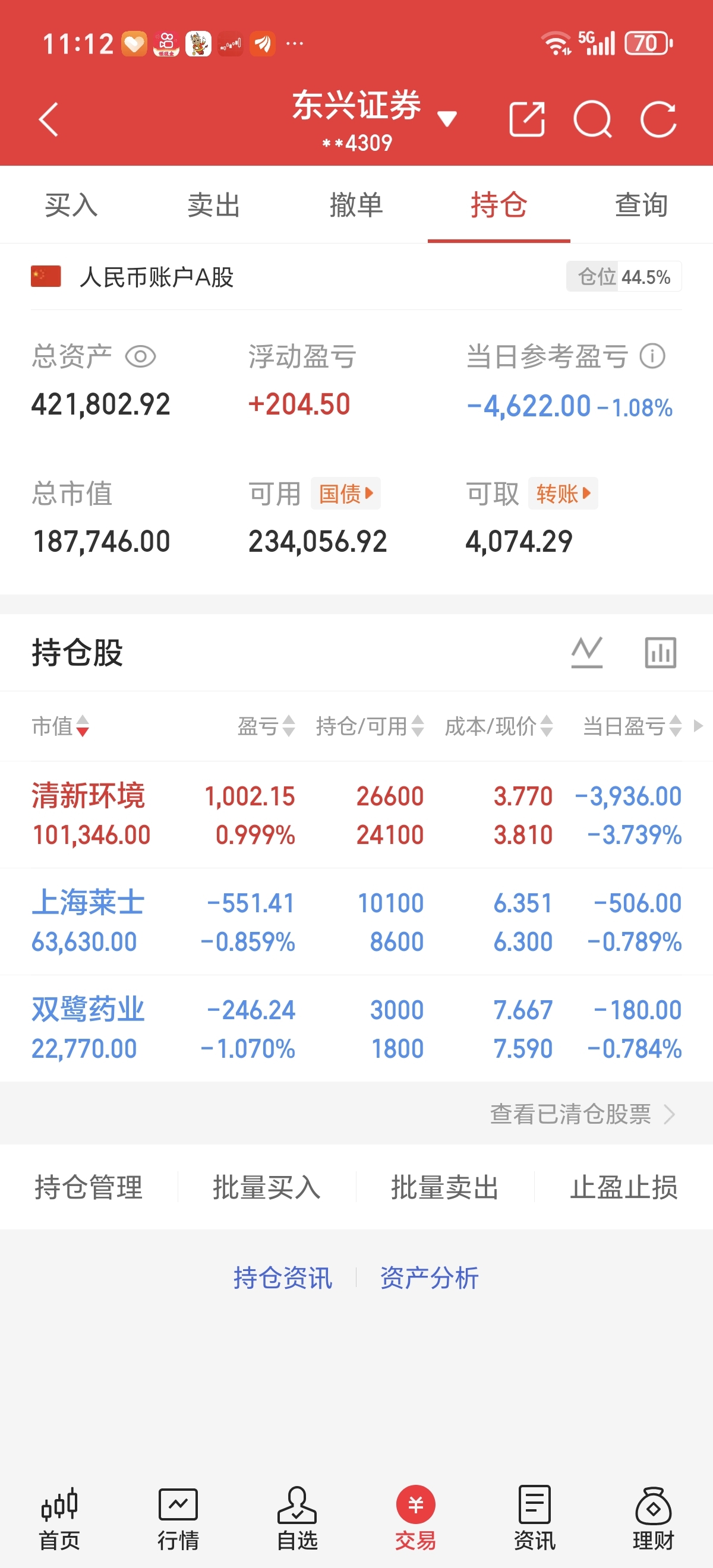 清新环境重回10万市值,不管他是上到4.2还是下到3.5我都游刃有余