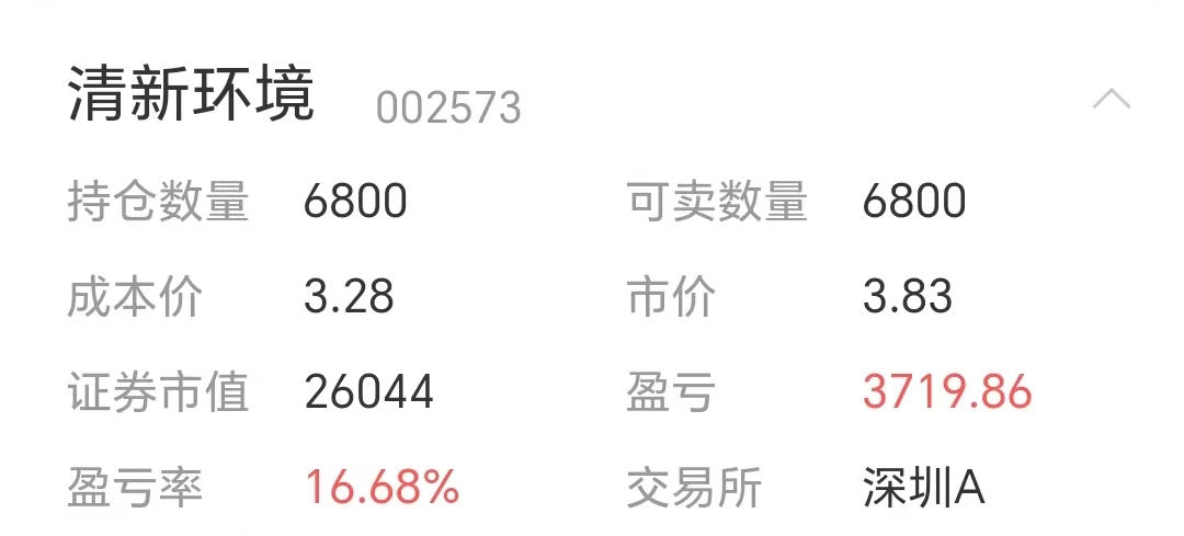 $清新环境(SZ002573)$ 留点底仓,让你去折腾。