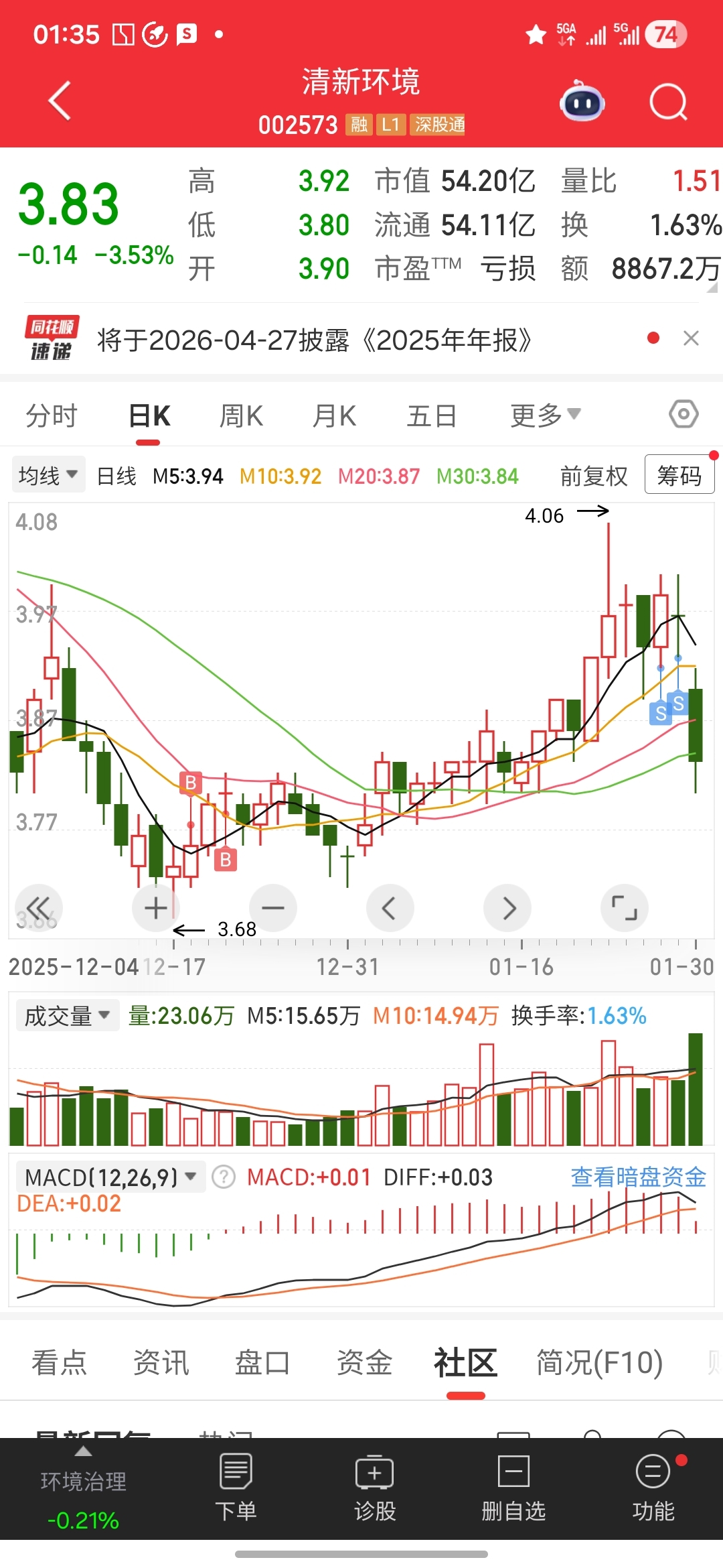 $清新环境(SZ002573)$ 还以为踏空了呢