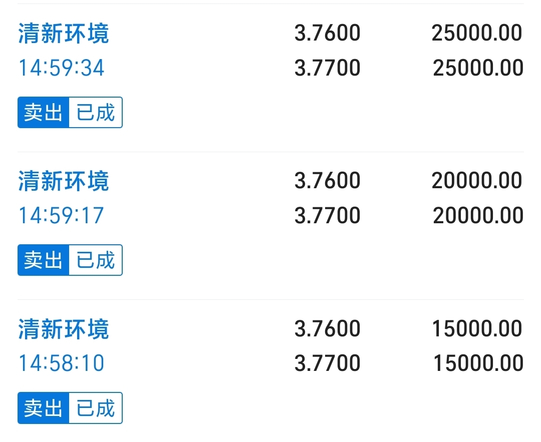$清新环境(SZ002573)$ 今天能收3.78的、是我砸到3.77