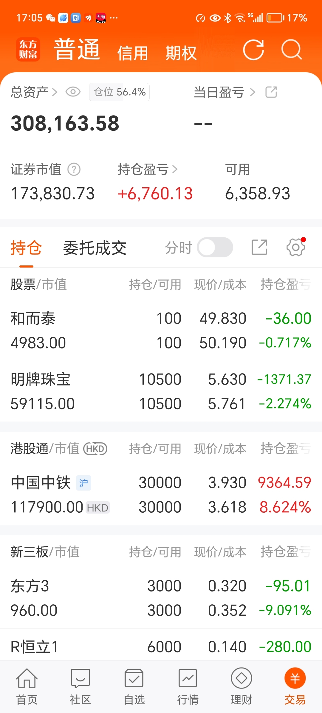 $明牌珠宝(SZ002574)$ 【小散9月底持仓分析】9月份未抓住一个热点票,当月收益不足5000元,留下N多遗憾。截止收盘,持仓60%,共持有5只。1、和而泰:看好后市,先入1手,补仓价42元附近,止损价42以下。2、明牌珠宝:10月份不乐观,随时止损。3、中国中铁H股:己减仓60%,继续逢低买进。4、东方3:希望在东方5、恒立R1:归0是必然。