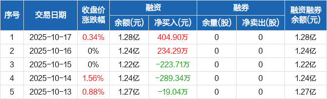 明牌珠宝:融资净买入404.9万元,融资余额1.28亿元(10-17)