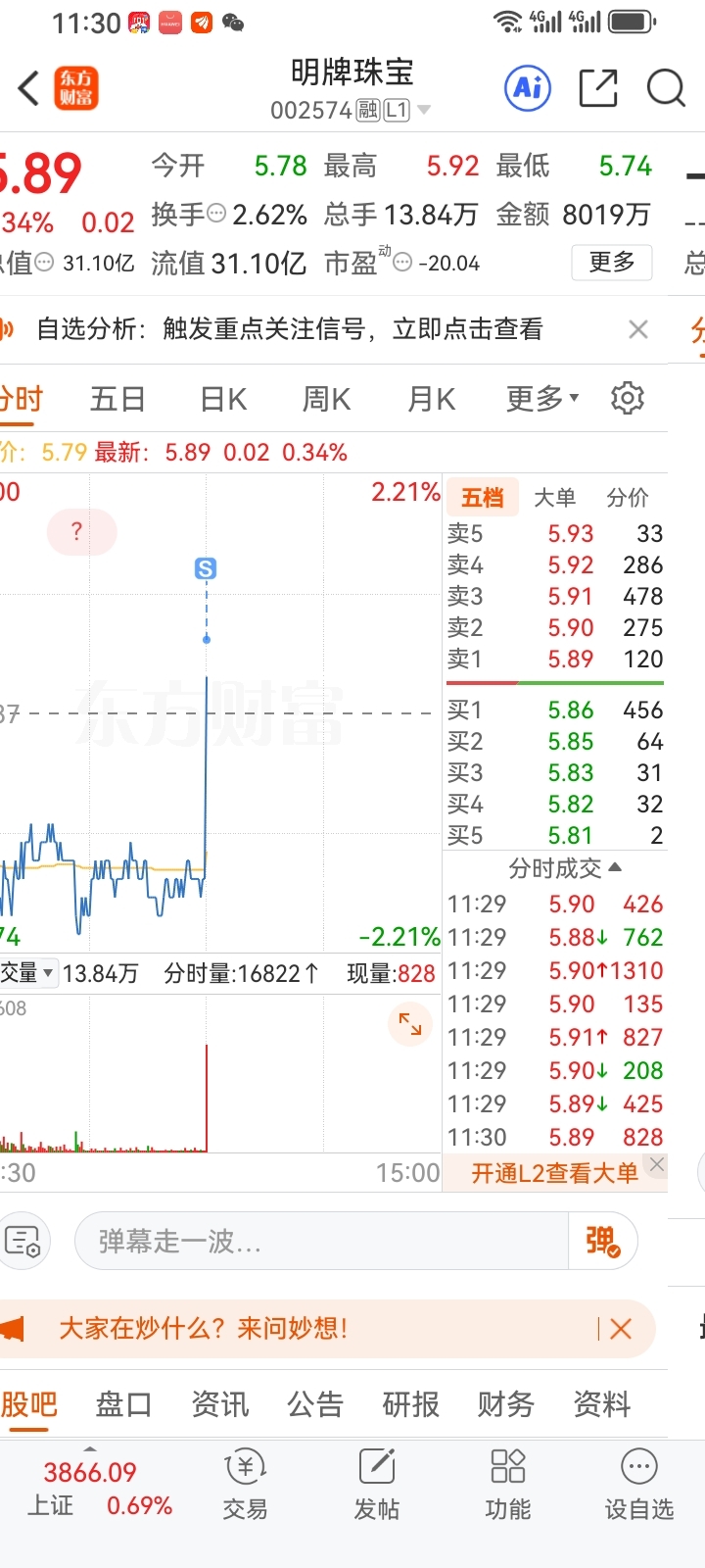 $明牌珠宝(SZ002574)$
