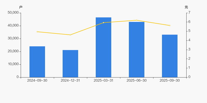 截至2025年9月30日,公司最新总股本为5.28亿股,且均为流通股。户均持有流通股数量由上期的1.23万股上升至1.6万股,户均流通市值8.99万元。