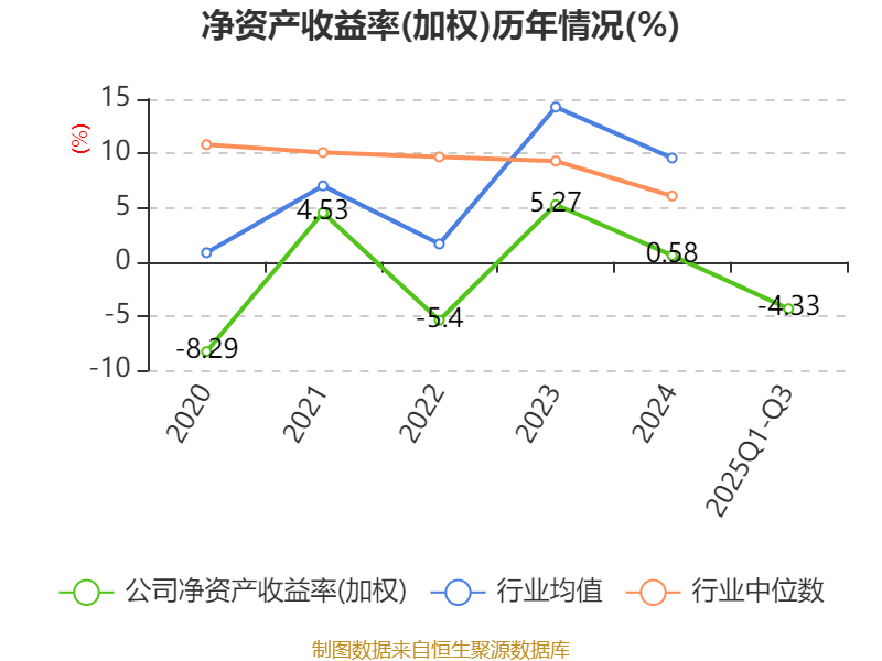 盈利能力方面, 2025年前三季度公司加权平均净资产收益率为-4.33%,同比下降4.58个百分点。公司2025年前三季度投入资本回报率为-0.81%,较上年同期下降1.19个百分点。