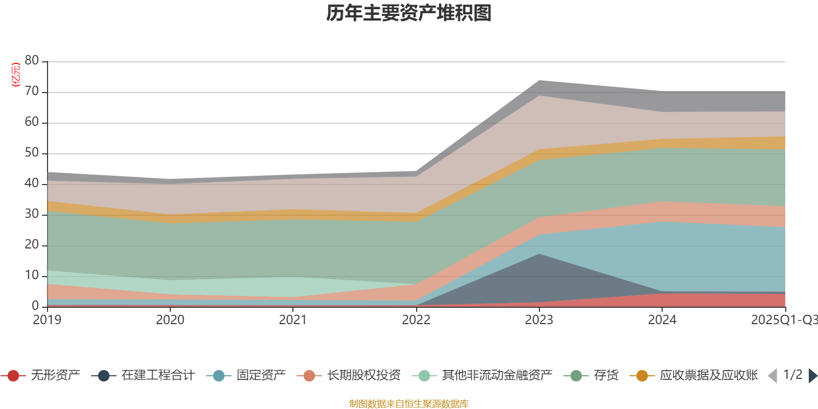 资产重大变化方面,截至2025年三季度末,公司固定资产较上年末减少7.63%,占公司总资产比重下降2.47个百分点;应收票据及应收账款较上年末增加42.95%,占公司总资产比重上升1.81个百分点;存货较上年末增加6.55%,占公司总资产比重上升1.62个百分点;货币资金较上年末减少7.92%,占公司总资产比重下降0.99个百分点。