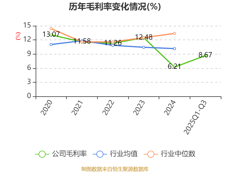 2025年前三季度,公司流动比率为1.08,速动比率为0.52。