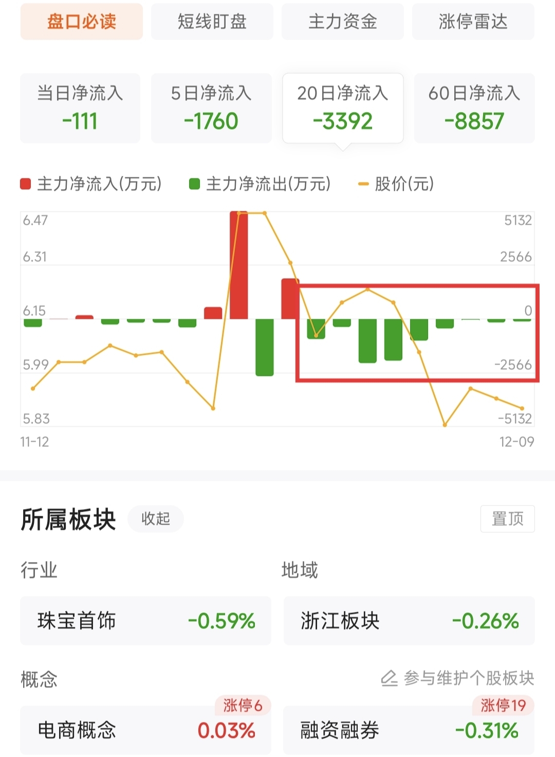 $明牌珠宝(SZ002574)$ 这是阴跌吗?拉一个板,阴了10天,拉板花了5000w阴了10天出了7000多个w,回到了涨停前,是不是拉高出货了2000多个,都是这么套浅的吗