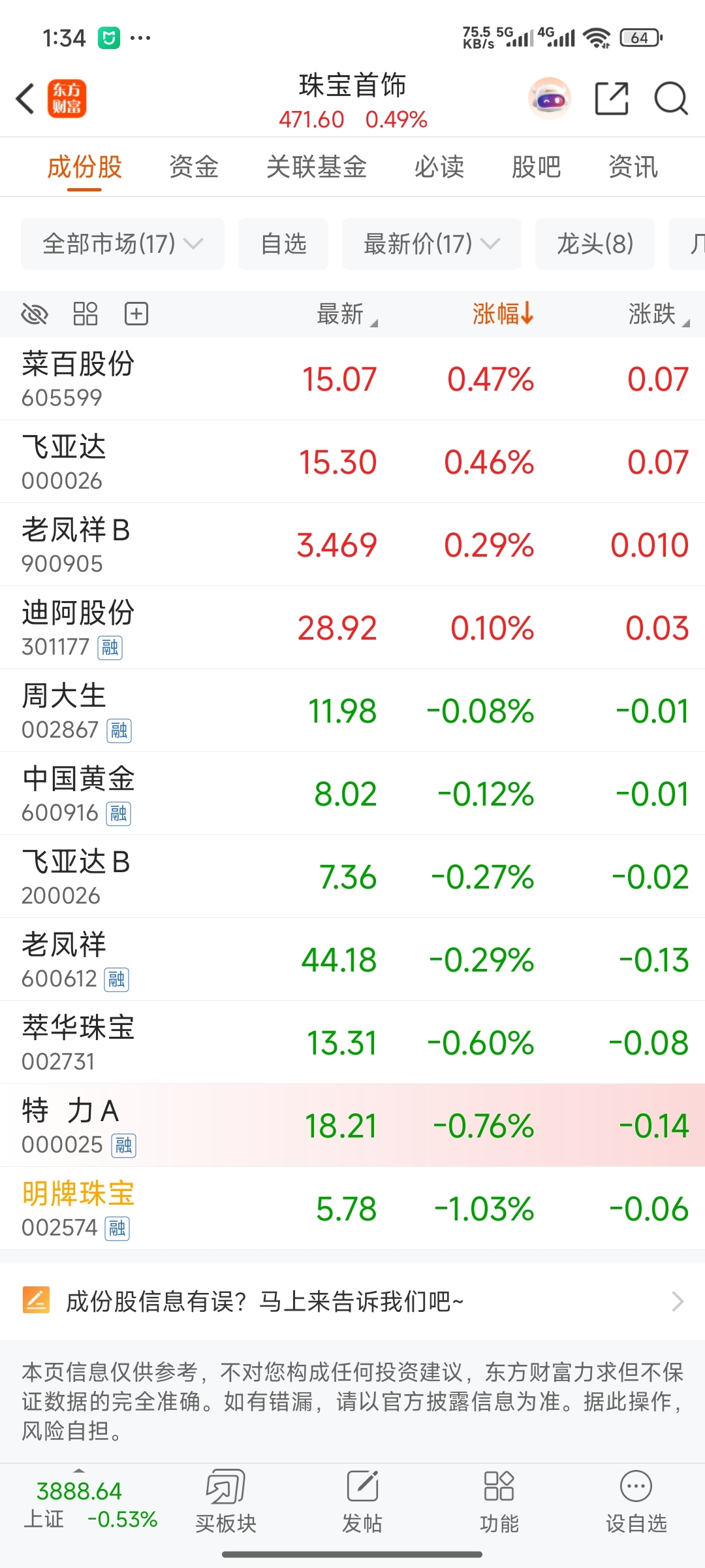 $明牌珠宝(SZ002574)$ 整个板块就你一个跌一个点以上,怎么做到那么牛的