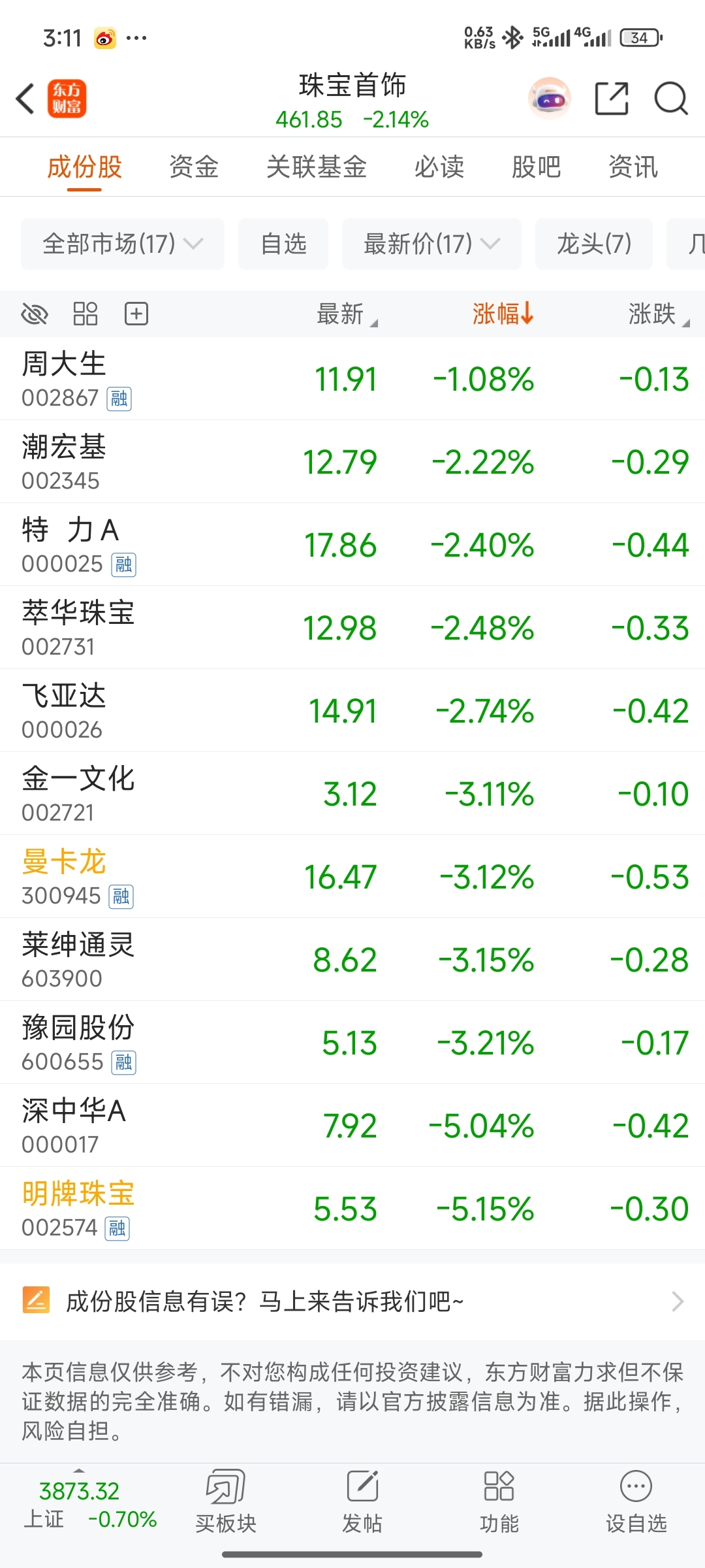$明牌珠宝(SZ002574)$ 又垫底,就你一个跌5个,深中这周涨了几个点