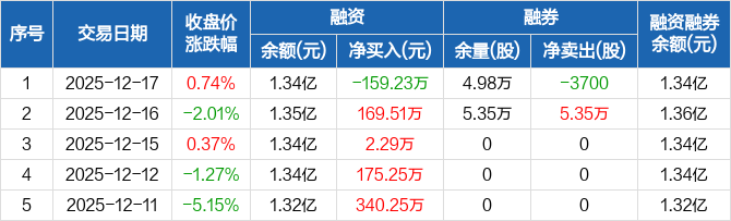 明牌珠宝:融资净偿还159.23万元,融资余额1.34亿元(12-17)