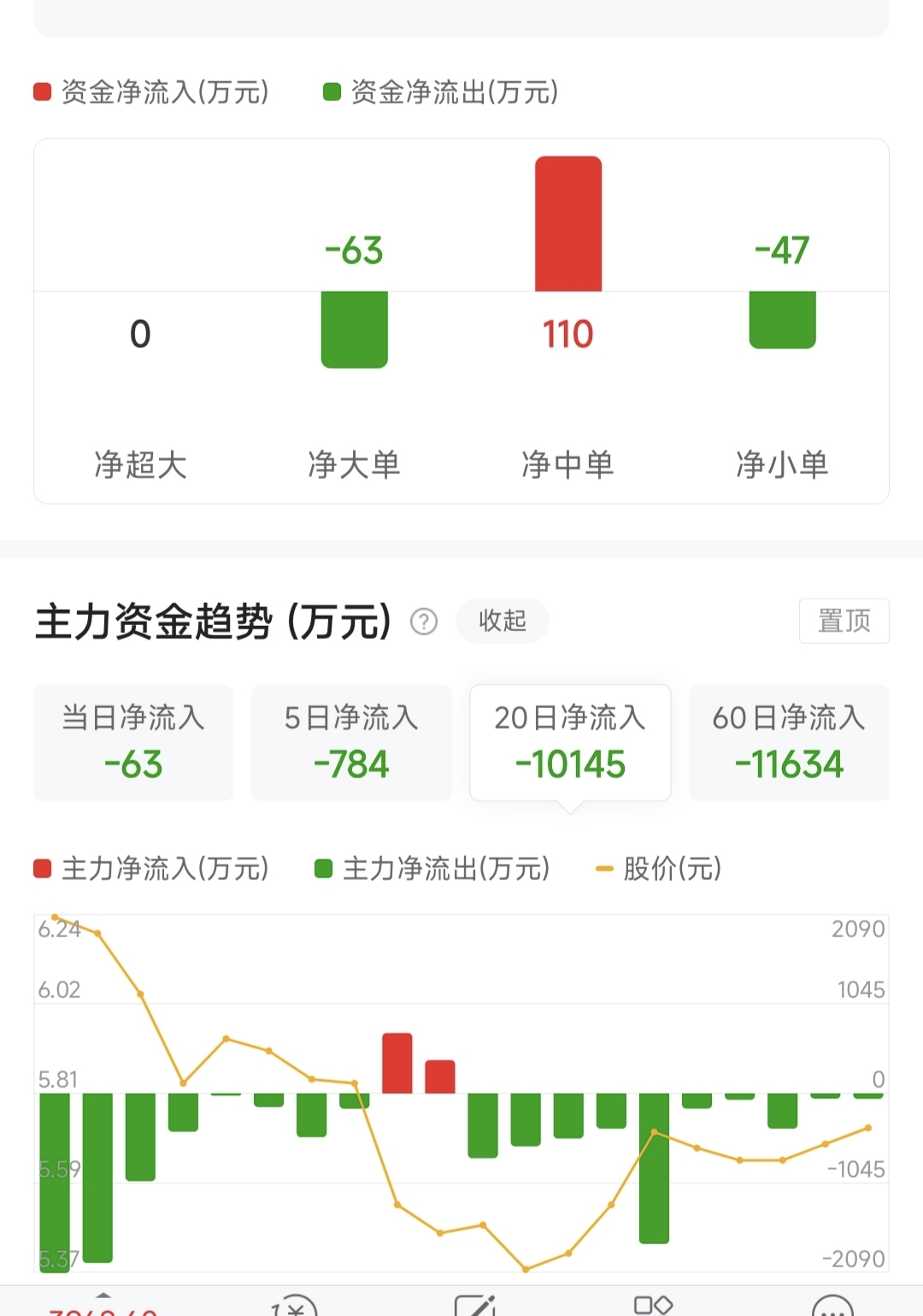 20天净流出18天,每天大单净流出,这庄可以呀技术