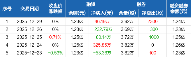明牌珠宝:融资净买入46.19万元,融资余额1.23亿元(12-29)
