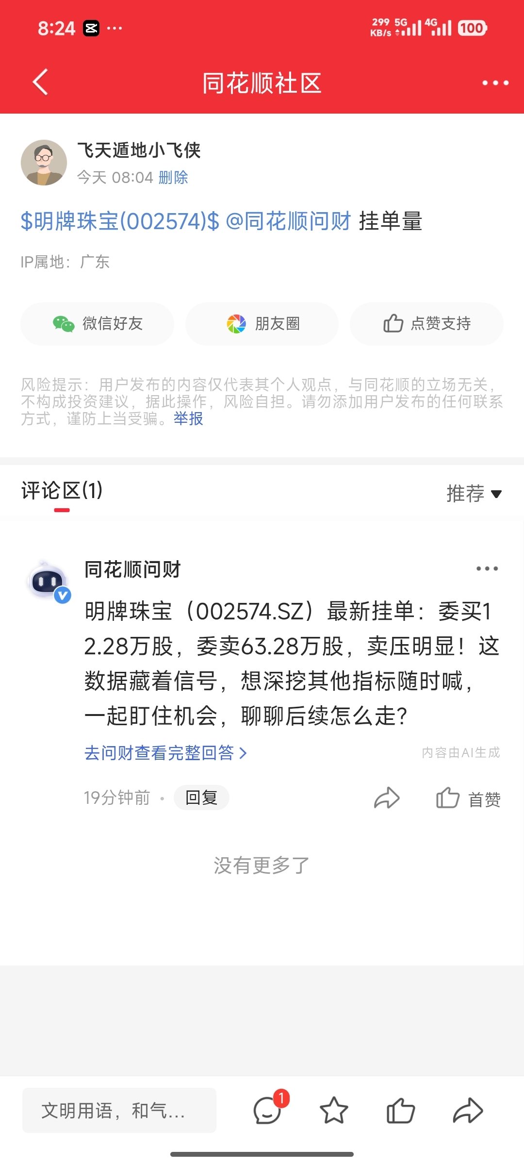温馨提示: 1.根据《证券法》规定,禁止编造、传播虚假信息或者误导性信息,扰乱证券市场;2.用户在本社区发表的所有资料、言论等仅代表个人观点,与本网站立场无关,不对您构成任何投资建议。用户应基于自己的独立判断,自行决定证券投资并承担相应风险。《东方财富社区管理规定》