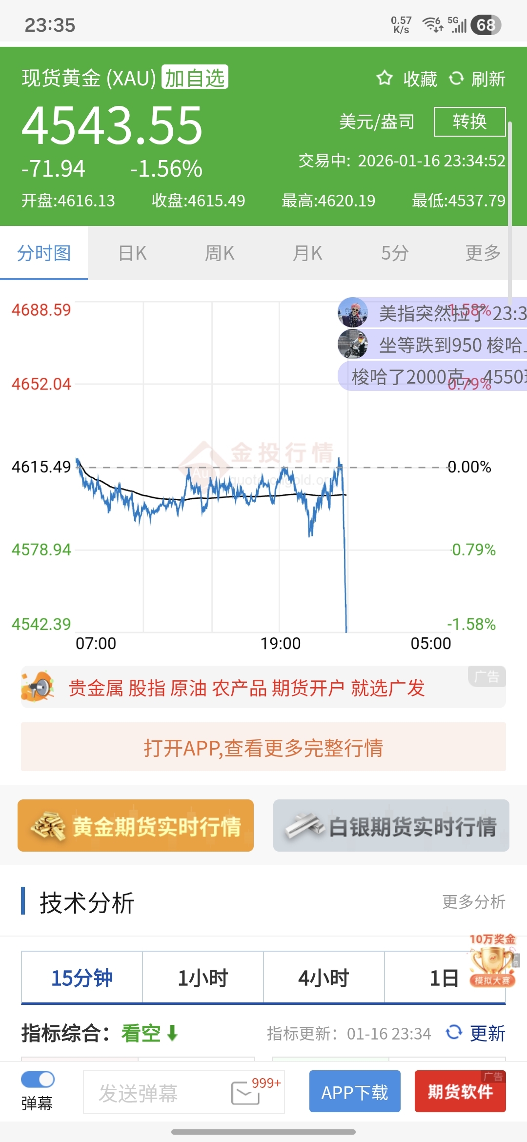 黄金直线跳水,星期一跌停