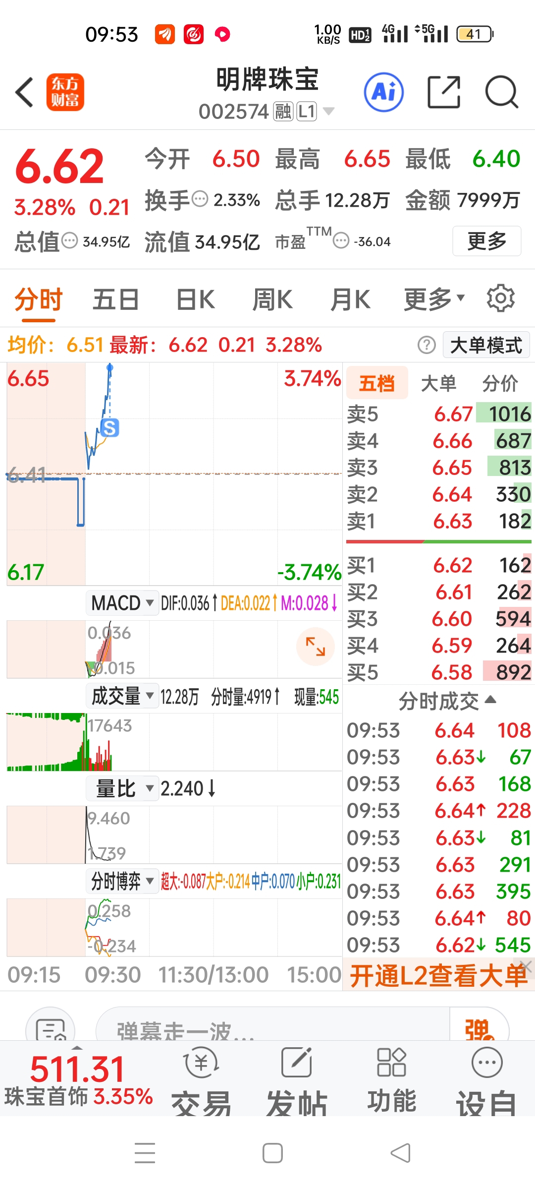 $明牌珠宝(SZ002574)$ 卖了,不会卖飞吧!
