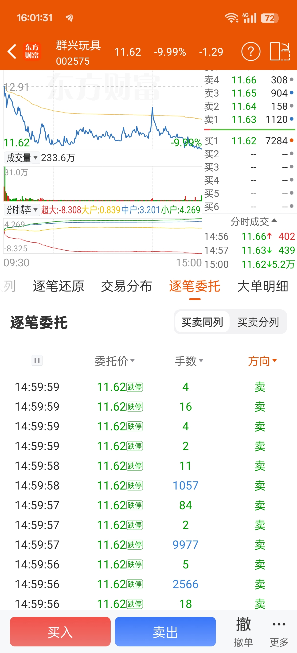 $群兴玩具(SZ002575)$ 买了一天,原来最低价在最后一秒