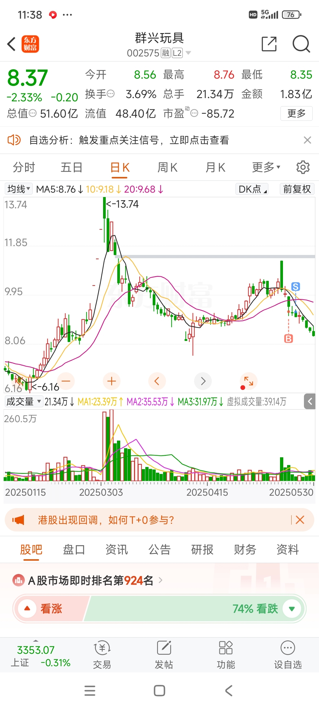 $群兴玩具(SZ002575)$ 大家先不要走,周二我接回来