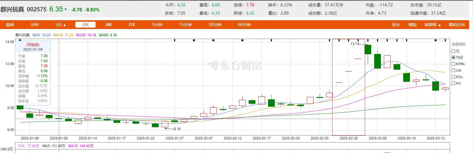 群兴玩具终止重大资产重组公告发布次日,群兴玩具股价开盘即“一字跌停”。