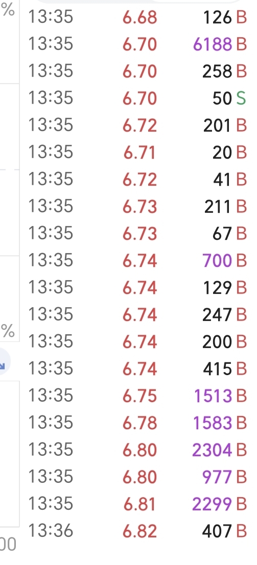 $群兴玩具(SZ002575)$ 今日下午开盘后6.7清仓,结果火箭拉升给我吓一跳,但还好并没有拉板,着实让我以为卖飞了,但可以看出里边一定是有机构或者游资,13.35分全是前手单吃进,为何没有拉板?不得而知,但我相信我的选择,下一目标建仓位置,6.5元,每跌1毛+1成仓位,5.8附近全场进。