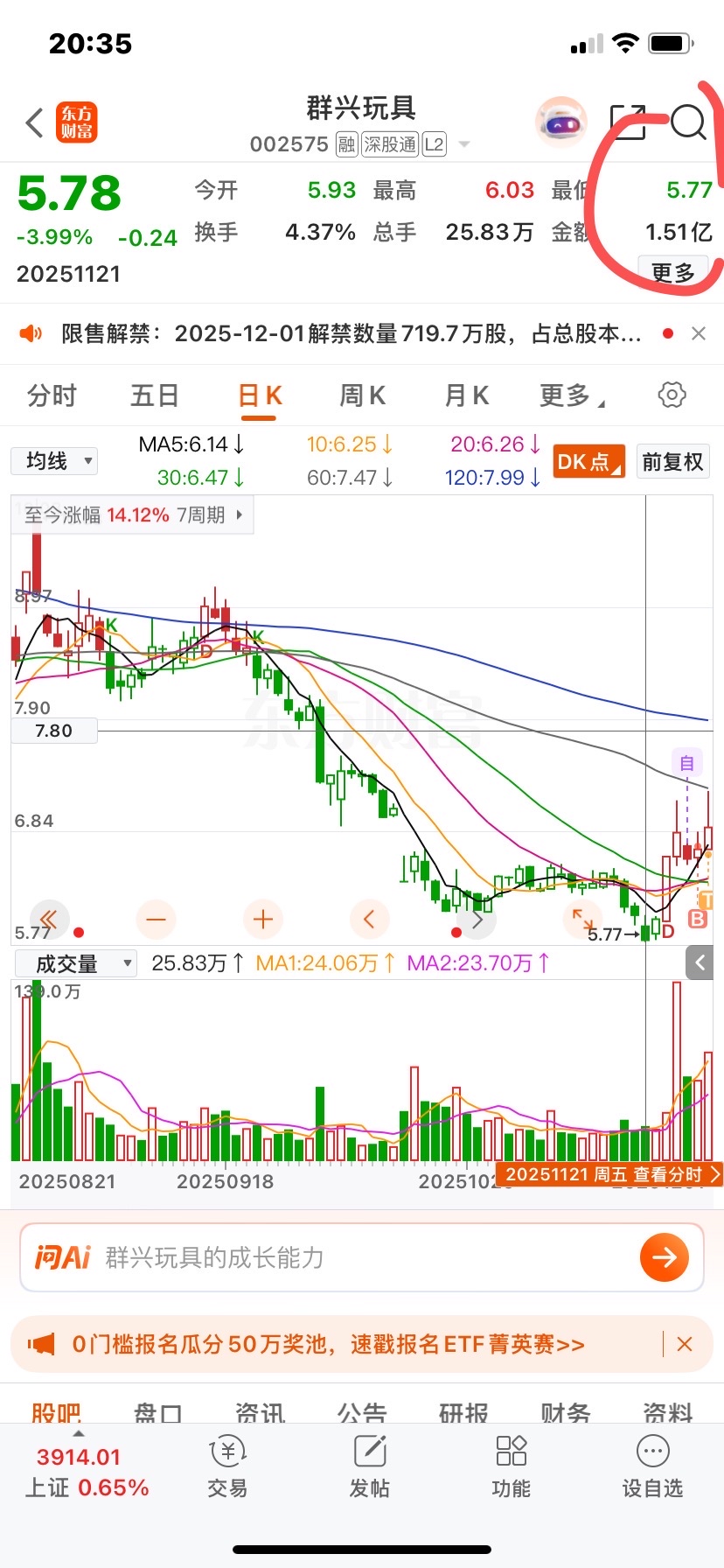 $群兴玩具(SZ002575)$ 话说对子底是要翻倍的!