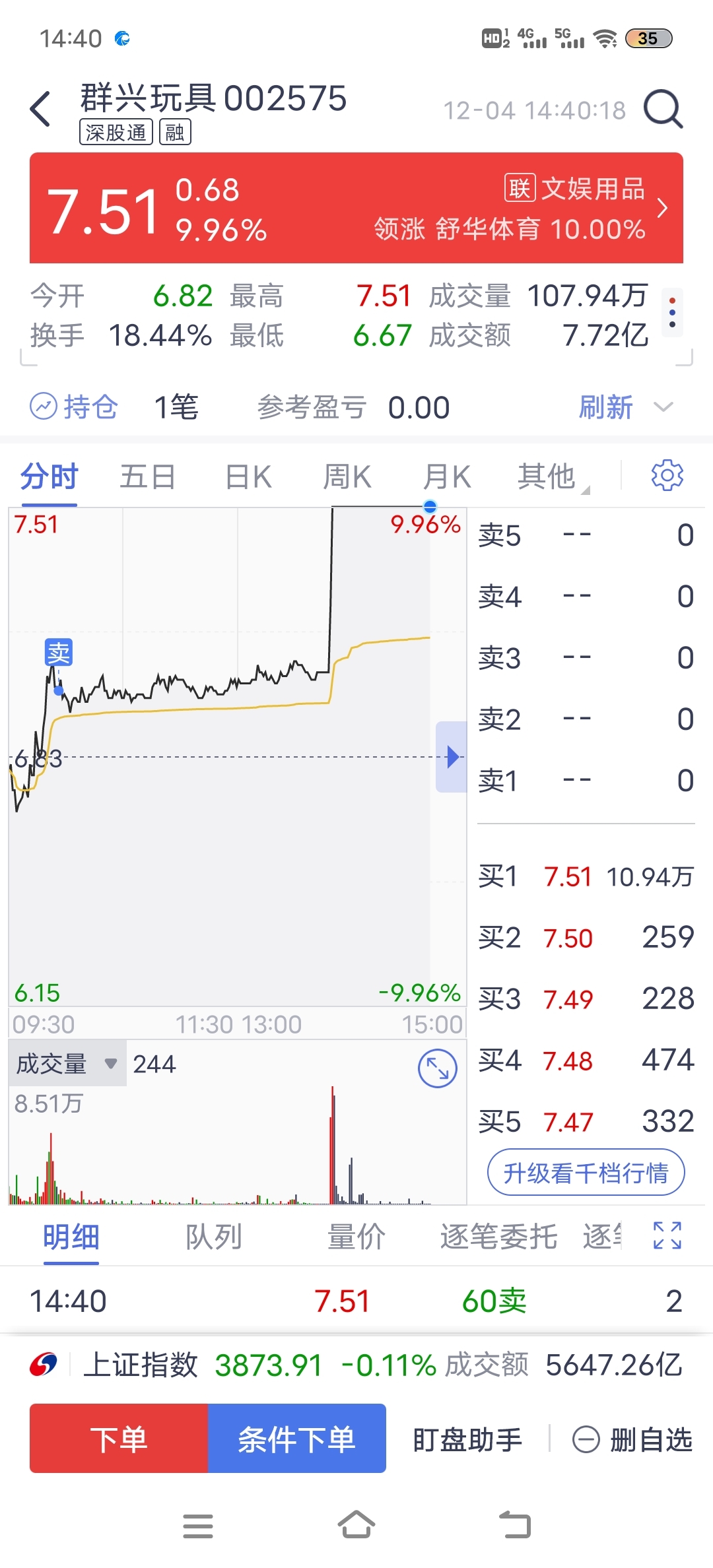 $群兴玩具(SZ002575)$ 又是卖在了涨停前