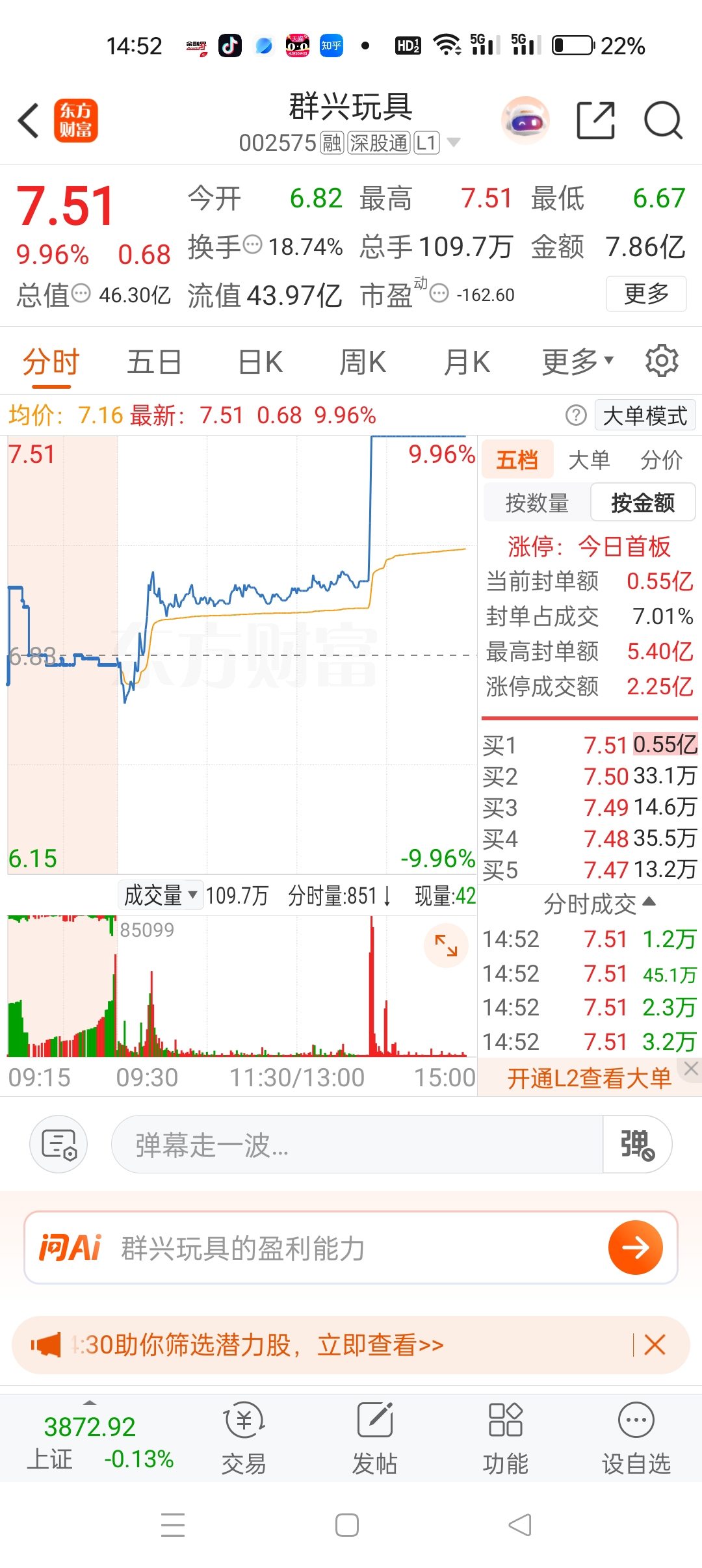 $群兴玩具(SZ002575)$ $广联航空(SZ300900)$ $中恒电气(SZ002364)$ ,群兴下午板了,信我的至少不算坑你们吧。今天进了中南,后面会关注剩下的这三个,还是看好,多的不说了。一定要有耐心,我有时候也是没耐心。