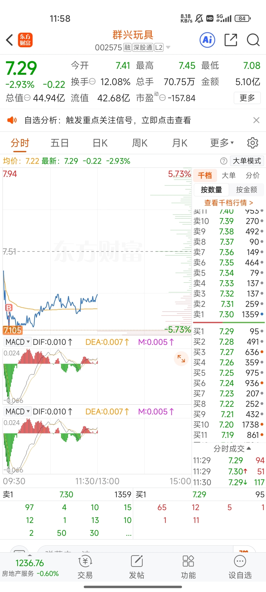 $群兴玩具(SZ002575)$ 早上挂7.1买入成交了,坐等拉升