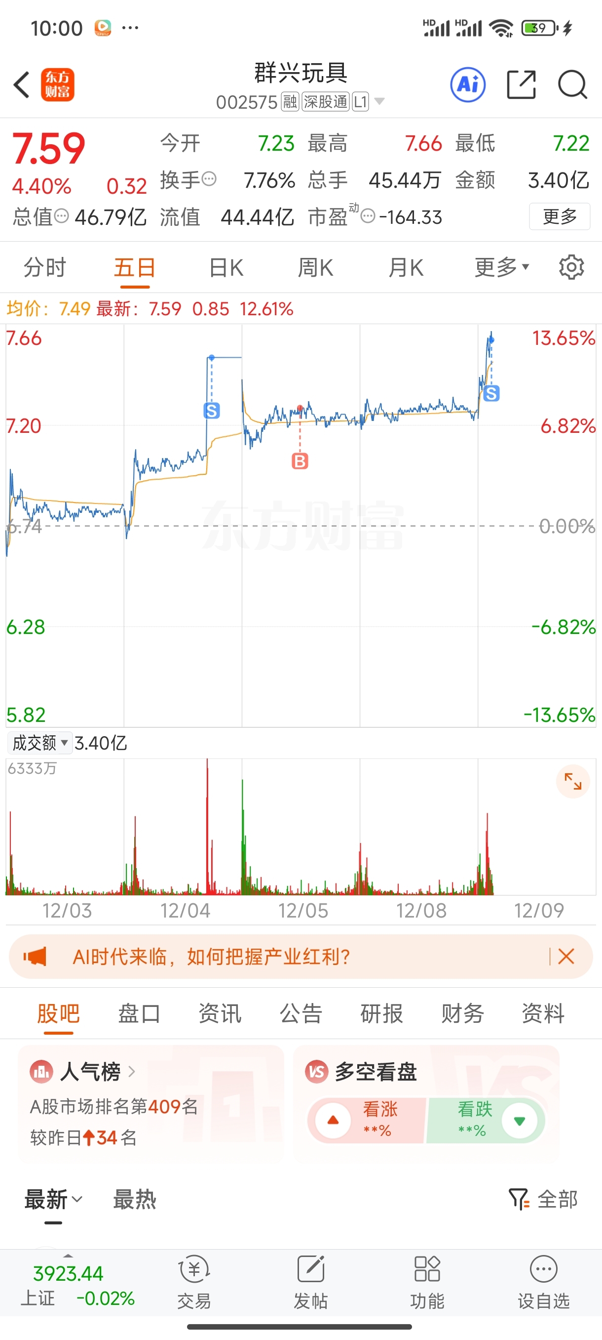 $群兴玩具(SZ002575)$ 走了,吃个5个点够了,不贪心