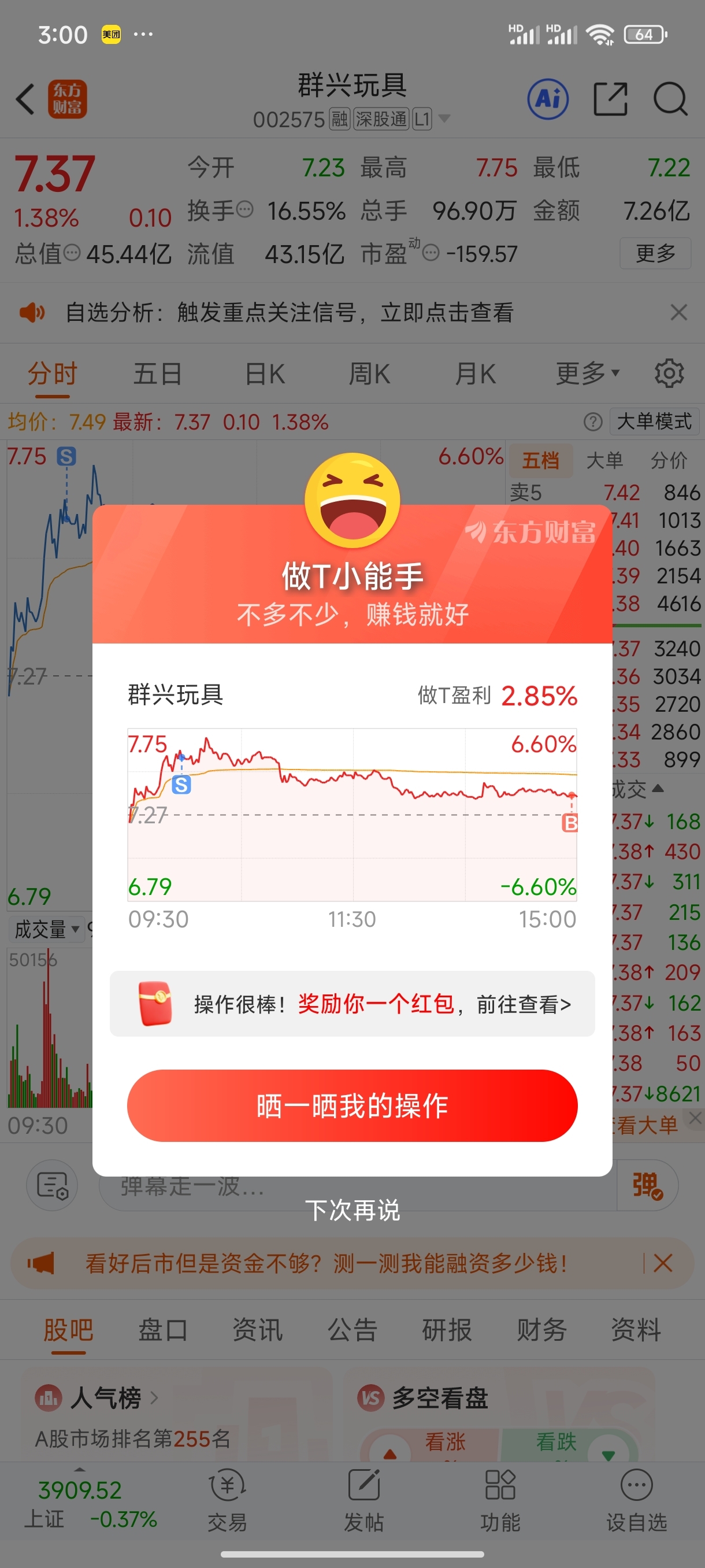 $群兴玩具(SZ002575)$ 越看越想买全仓出了,买了4分之一,留这慢慢玩,依旧看好,这个量怎么可能出货,只能震仓