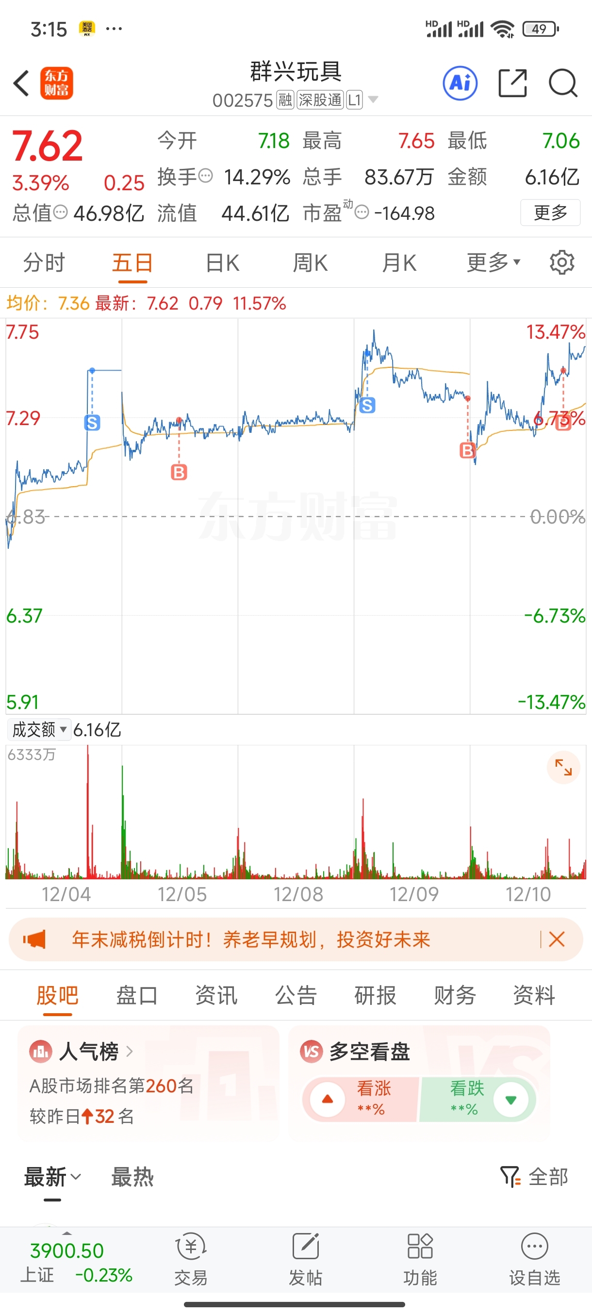$群兴玩具(SZ002575)$ #炒股日记# #强势机会# #收盘点评# 昨日做了T,今天早上忙没看盘,下午看了下,果断全仓买进去了这个低开高走怎么出货,今日用抢筹两个字来形容,暴起直飞来临