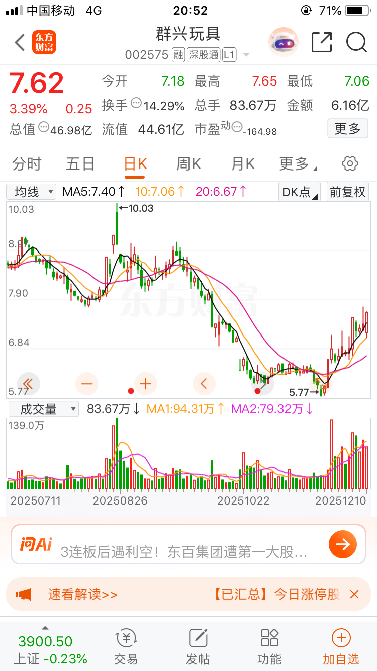 $群兴玩具(SZ002575)$ 这种废材,退市前炒一波,刚好大家又比较喜欢月线低的便宜货。