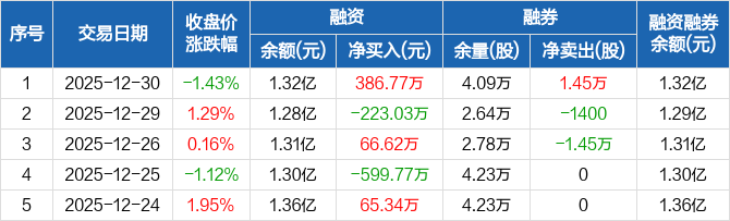 群兴玩具:融资净买入386.77万元,融资余额1.32亿元(12-30)