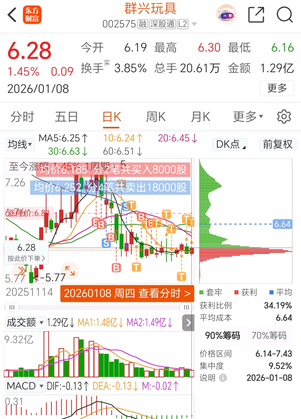 $群兴玩具(SZ002575)$ 主力不拉就继续做T目前已经盈利了,看谁能熬得住。