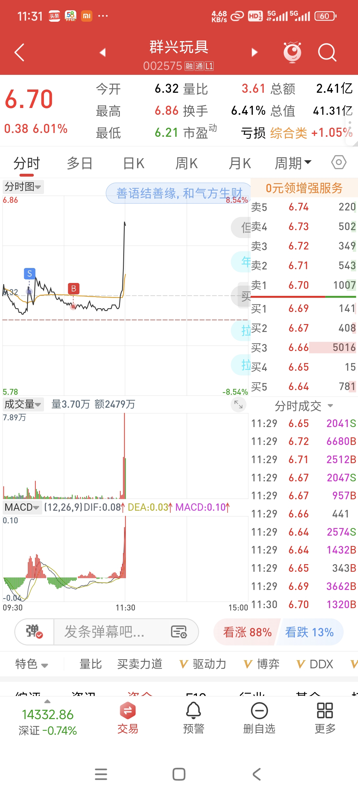 $群兴玩具(SZ002575)$ 水上卖,水下买,今天同样收购失败的哈森涨停了,群兴学哈森呢