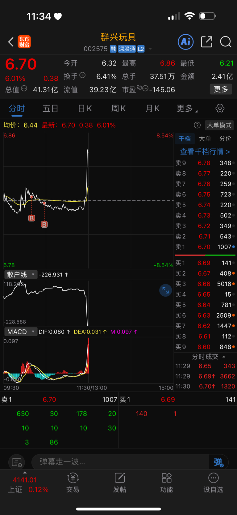 $群兴玩具(SZ002575)$ 还以为买错了……主力真狠