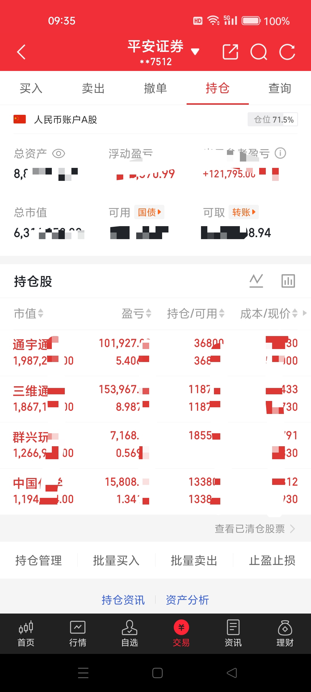 持仓:$三维通信(SZ002115)$ ,$通宇通讯(SZ002792)$ ,中国化学