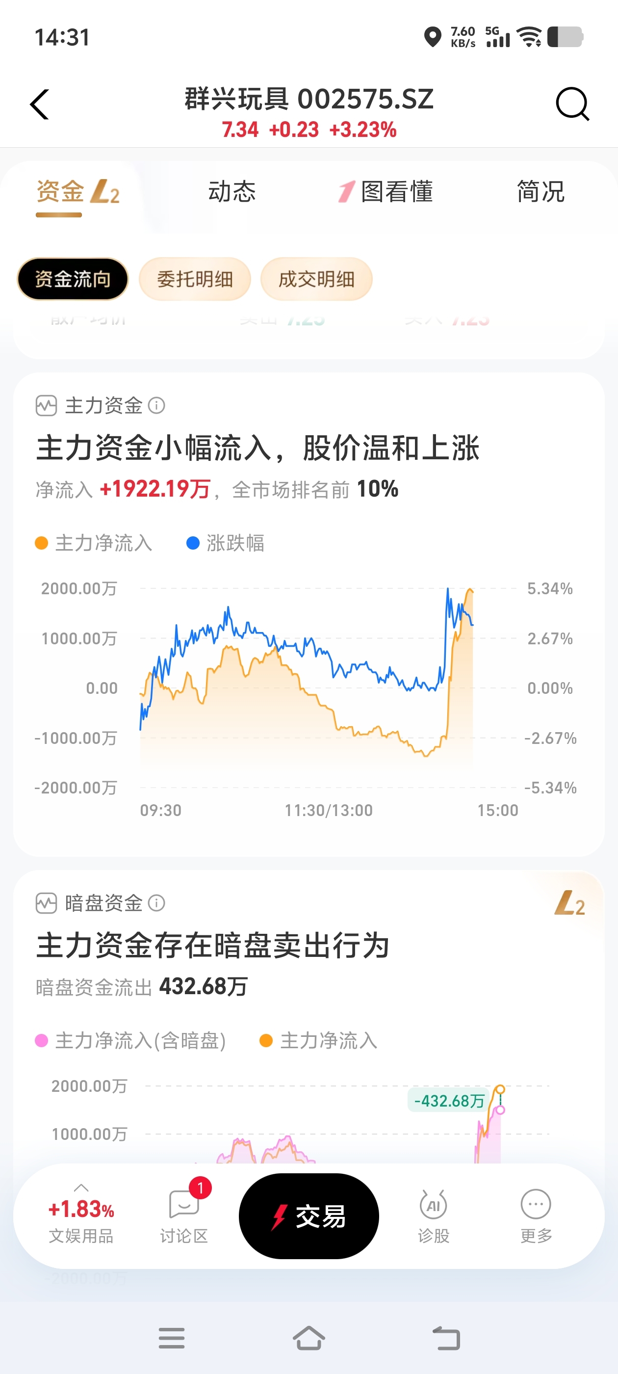 $群兴玩具(SZ002575)$ 主力也在进啊,怎么还掉下来了