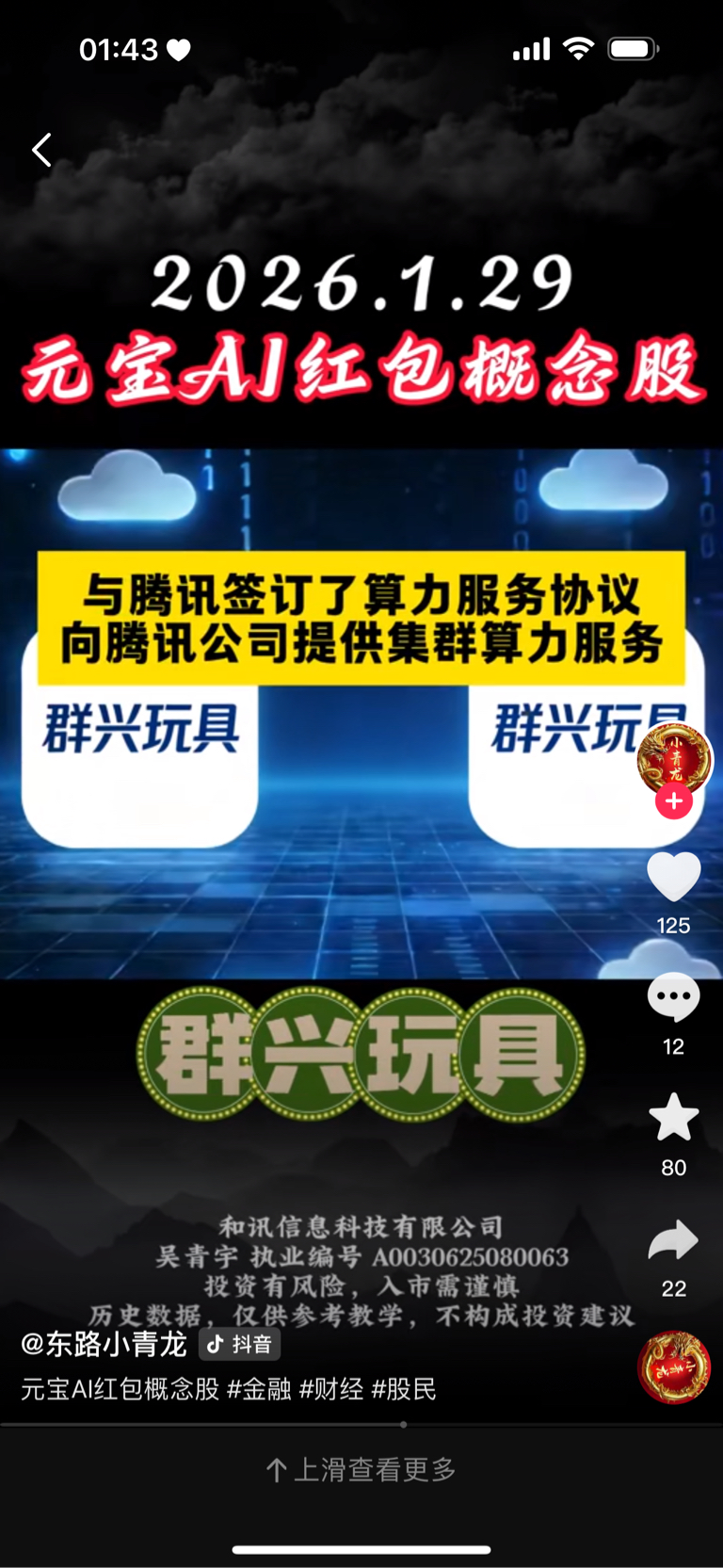 $群兴玩具(SZ002575)$ 群星还真与腾讯签了算力……就是不涨