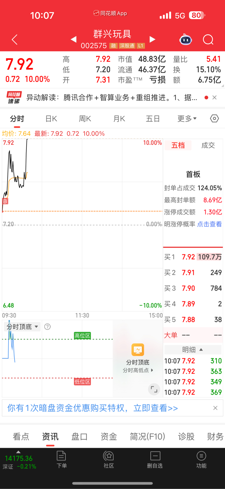 $群兴玩具(SZ002575)$ 总算打板成功一回