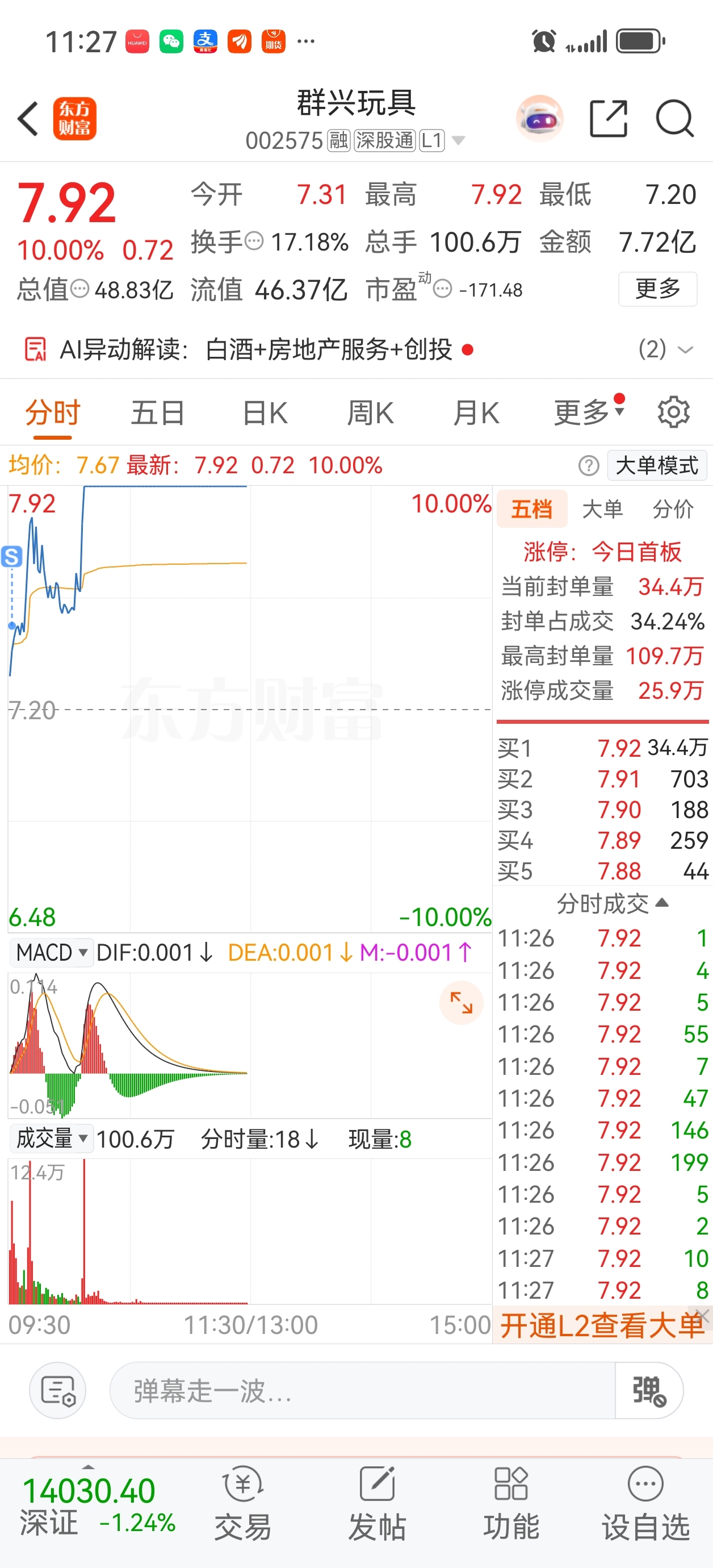 $群兴玩具(SZ002575)$ 开盘把我吓跑了,后悔了