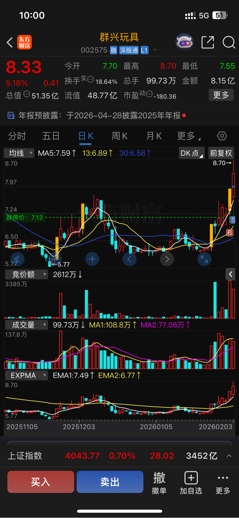 $群兴玩具(SZ002575)$ 只取一瓢饮,祝车上的兄弟继续发财