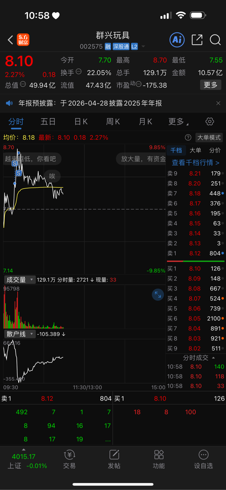 $群兴玩具(SZ002575)$ 彻底出干净了,套了近两个月回本小挣,下来在买,涨了就恭喜各位发财!